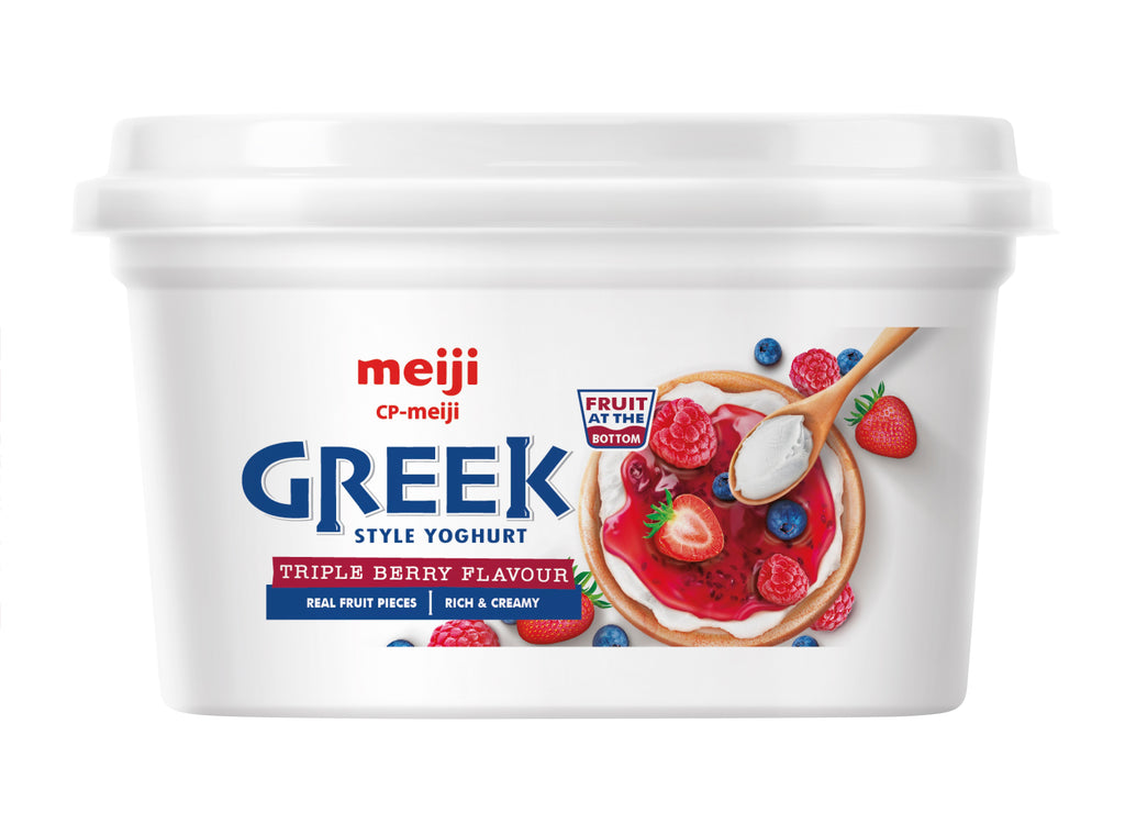 Experience a premium Greek yogurt with quality ingredients. CP-Meiji Natural Greek Style Yogurt boasts no added sugar and is made with quality fresh milk for a smooth, creamy texture.