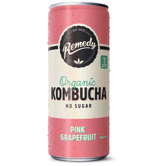 What you get: 24 cans of Remedy Pink Grapefruit Kombucha 250ml